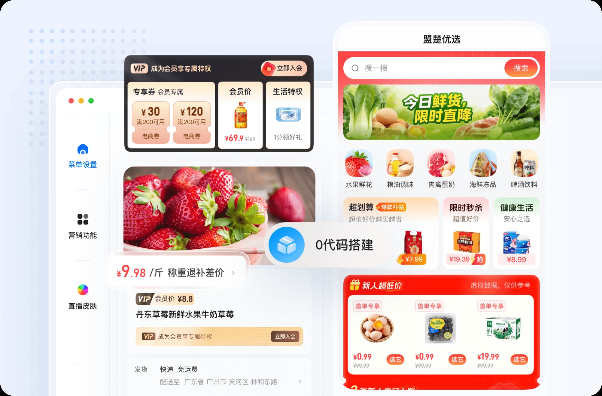 品牌定制 + 0代码搭建 + 会员营销。