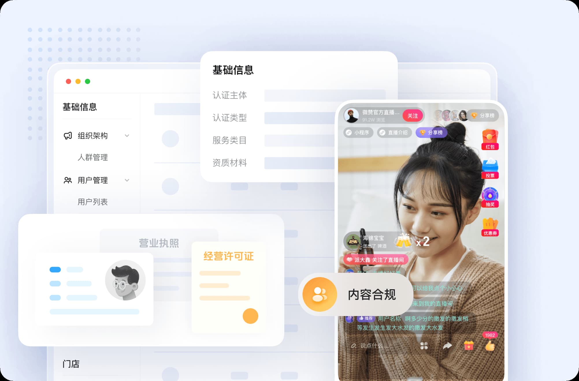资质申请、类目报备、内容合规、资质备齐。